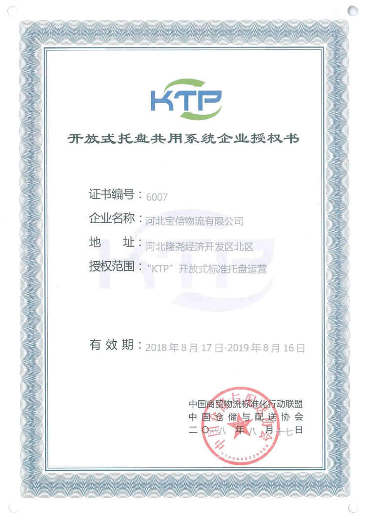 好事接踵,佳音頻傳。集團旗下寶信物流與寶信聯福分別被中國倉儲與配送協會認定為開放式托盤共用系統流通企業與開放式托盤共用系統制造企業,并頒發了授權書.