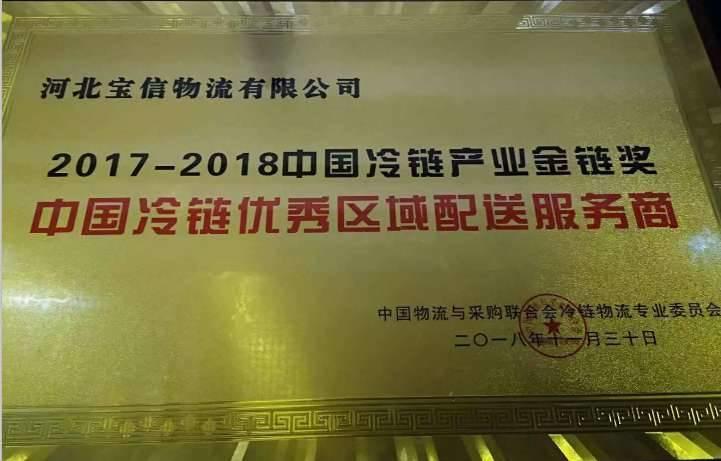 30日上午, 2017—2018中國冷鏈產業金鏈獎頒獎儀式如期在年會上舉行,寶信憑借創新的冷鏈發展模式、雄厚的技術支持以及高質量的配送服務體系喜獲“中國冷鏈優秀區域配送服務商”的榮譽稱號,這是對集團B網發展最大的鼓勵和肯定。