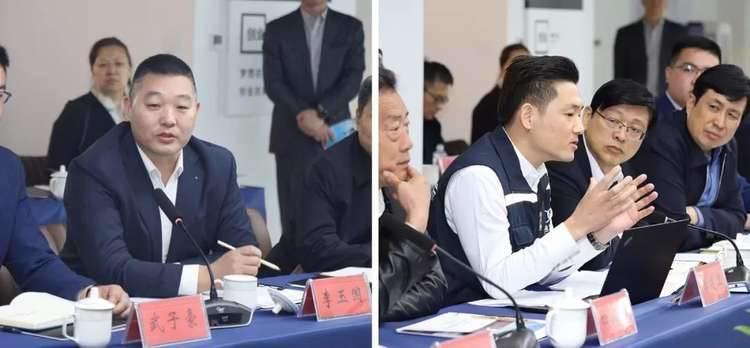 ▲寶信董事長李玉國(左)及副總經理李建衛(右)在座談會上匯報基地情況