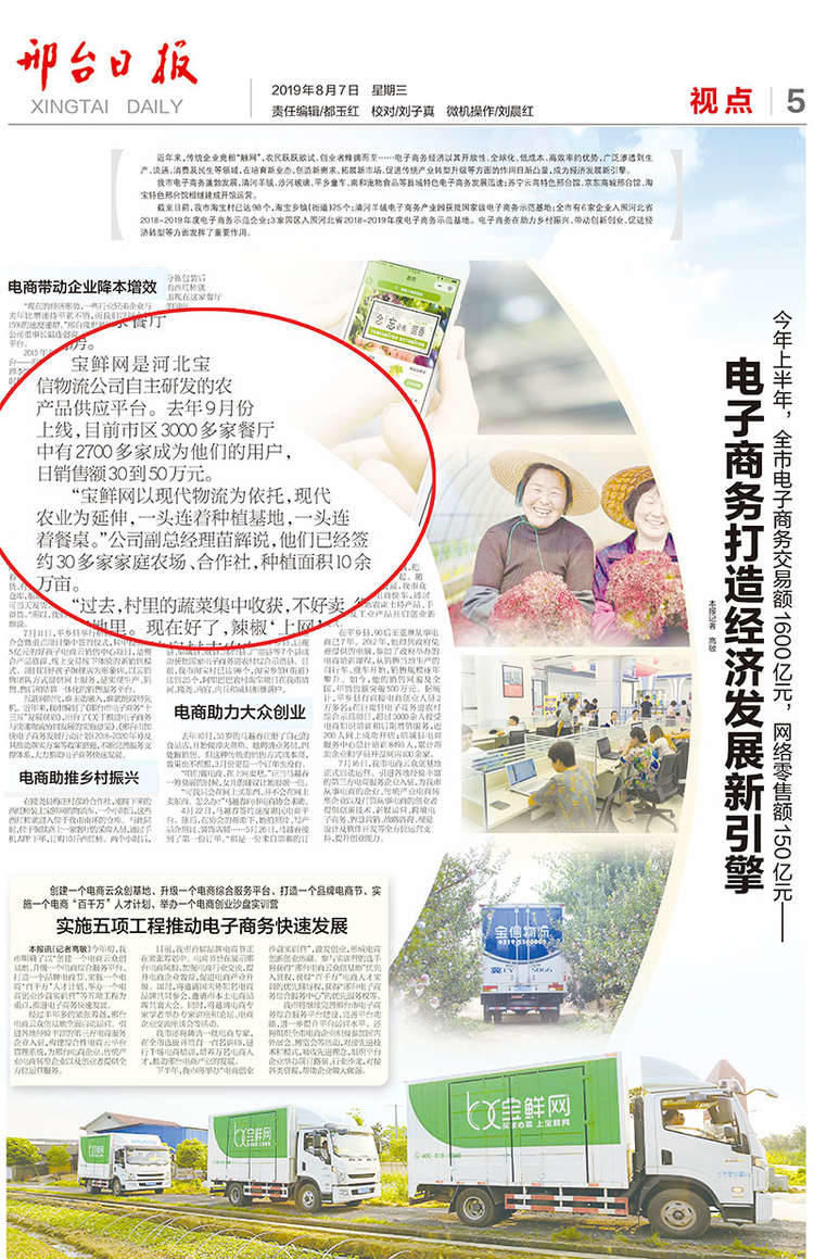讓牛城百姓足不出戶吃上放心菜-------邢臺日報重點報道“寶鮮網”