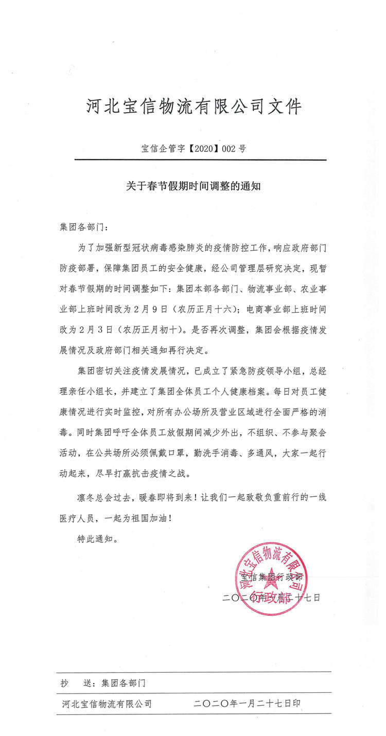 關于春節假期時間調整的通知