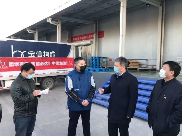 鄭書記在檢查現場表示,寶信物流能在疫情期間積極保障隆堯縣蔬菜糧油等民生物資正常供應,讓全縣百姓在疫情期間能夠吃上放心菜、安全菜,這是企業主動擔當社會責任的體現,給予公司“有寶信在,縣里就放心”的高度評價。