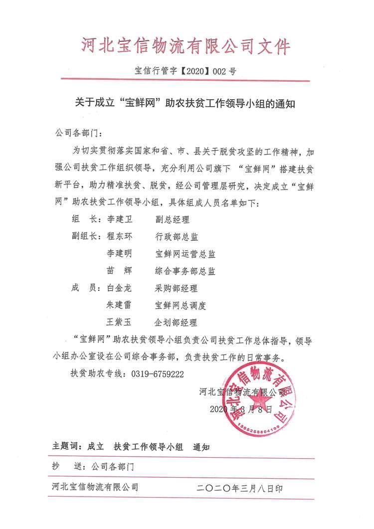 關于成立“寶鮮網”助農扶貧工作領導小組的通知