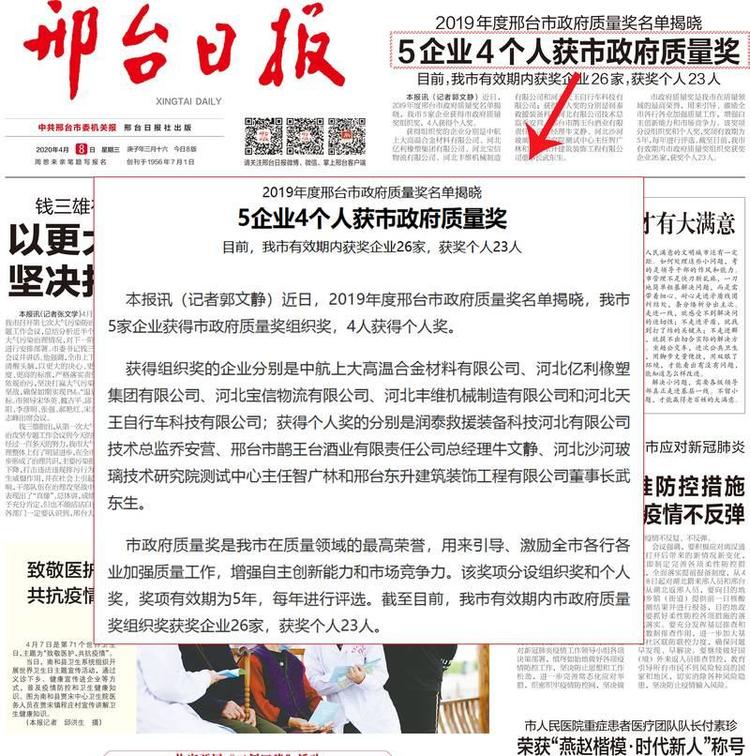 超高含金量!寶信物流獲得2019年度邢臺市政府質量獎