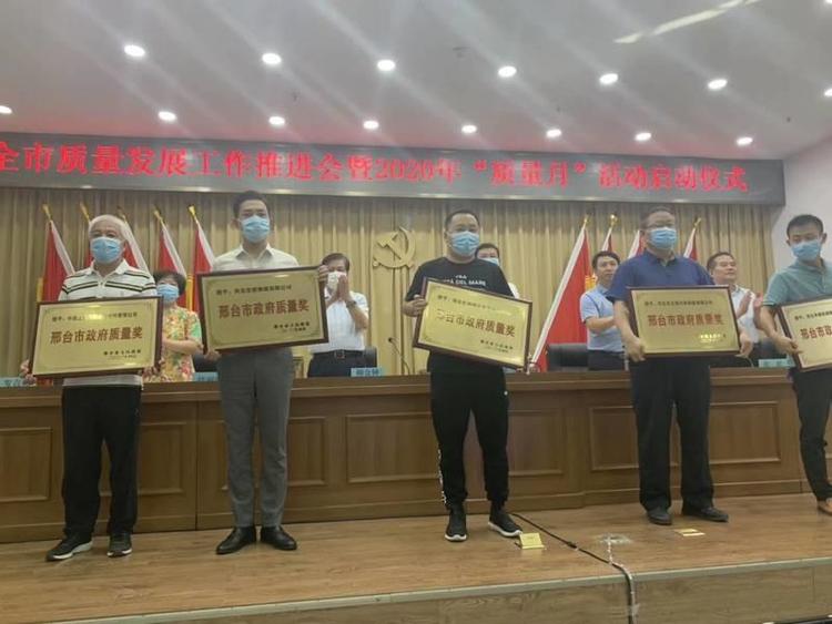 9月4日,在邢臺市市場監督管理局舉辦“全市質量發展工作推進會暨2020年“質量月”活動啟動儀式。邢臺市委常委、常務副市長張強參加會議,并向榮獲2019年“邢臺市政府質量獎”的企業頒發獎牌,公司總經理李建衛代表公司上臺領獎。