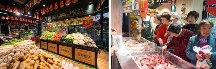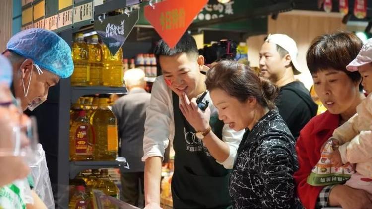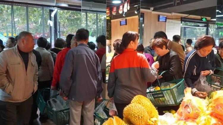 7點30分剛一開門營業,大家迫不及待地涌入門店,一會功夫,店內的果蔬、禽蛋就被一搶而光!工作人員不得不緊急備貨,重新碼放商品。