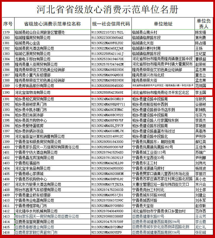 日前,河北省市場監督管理局對省級放心消費示范單位進行通報表彰,名單公示,寶信物流獲評“河北省省級放心消費示范單位”稱號。