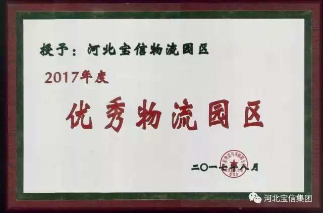 捷報頻傳、佳音接踵,在四川遂寧召開的2017年全國物流園區第十五次工作年會上,經相關主管部門的聯合推薦、中物聯物流園區專委會評審,集團旗下的寶信物流園被評為“2017年度全國優秀物流園區”。